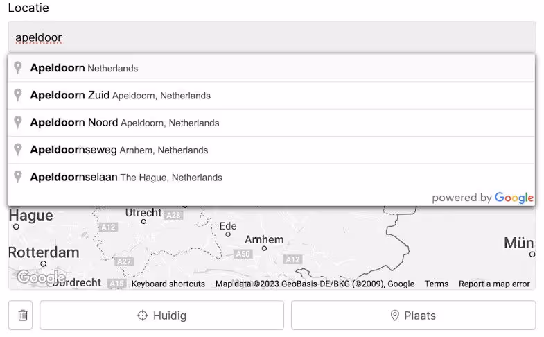 Locatie velden hebben nu ook een zoekbalk waarmee je direct een adres kunt vinden.